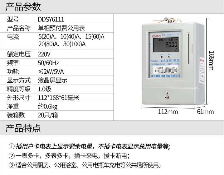 DDSY6111型電子式單相插卡預付費電表,采用集成電路設計,全自動表面貼裝(SMT)生產工藝制造。電能表的線路設計和元器件選擇以較大的環境允差為依據,可保證整機穩定工作,精度高、高過載、低功耗,可靠性能高。內置磁保持繼電器。通過控制繼電器實現控制負載的通與斷,實現督促用戶先買電后用電的功能。