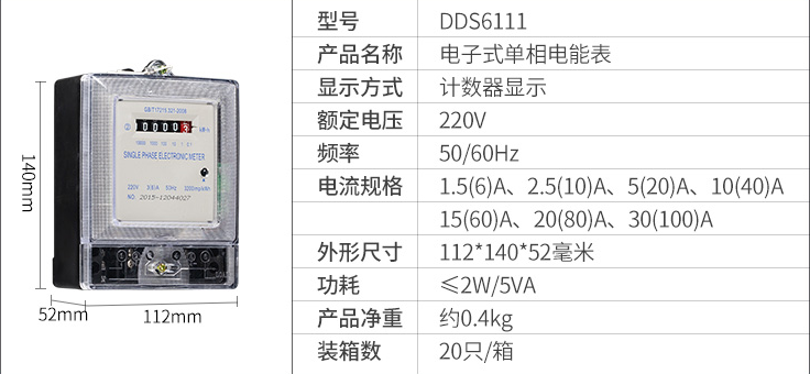 DDS6111型單相電子式電能表,由于采用集成電路和SMT制造工藝,使之測量準(zhǔn)確度,穩(wěn)定性等均得到了可靠保證.適用計(jì)量額定頻率為50Hz,額定電壓為220V的單相交流有功電能.