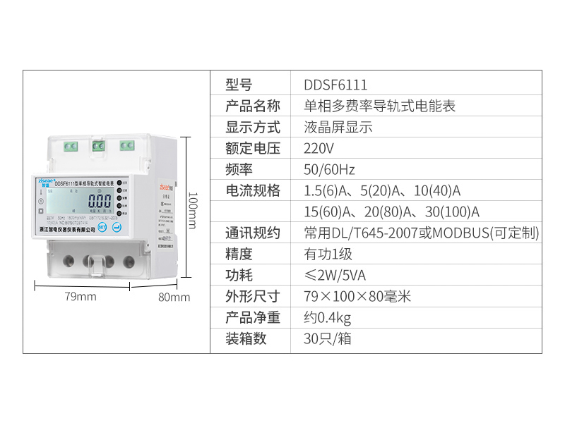 DDSF6111-4單相電子式多費率電能表是采用先進的電能計量芯片,與成熟的多費率技術相結合設計而成,應用數字采樣處理技術及SMT工藝,根據居民實際用電狀況所設計、制造的電能儀表。該表實現分時計量,設定日自動轉存數據,LCD顯示等功能。該表可進行4種費率、10個時段、4個時區及12位表號等設置,并具有電能測試脈沖輸出功能。該表性能指標符合GB/T 17215.321-2008《1級和2級靜止式交流有功電能表》、GB/T 15284-2002《多費率電能表特殊要求》和通信規約符合DL/T645-2007《多功能電能表通信規約》的要求。