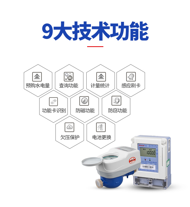1、概述預付費水表是以旋翼式水表為基表,由干簧管取信裝置、低功耗電控閥門、微電腦控制系統、射頻卡信息系統集合而成的智能水表。該產品改變了傳統的用水收費方 式,由“先用水后交費”變為“先交費后用水”, 每次售水收款都有記錄,解決了“收費難、賬目亂”這兩個水費管理工作中的難題。有遠傳抄表功能的預 付費水表還可實時統計用水數量,為水費結算提供依據。產品符合國家標準GB/T778-2007《封閉滿管道中水流量的測量、飲用冷水水表和熱水水表》的全部技術要求。
