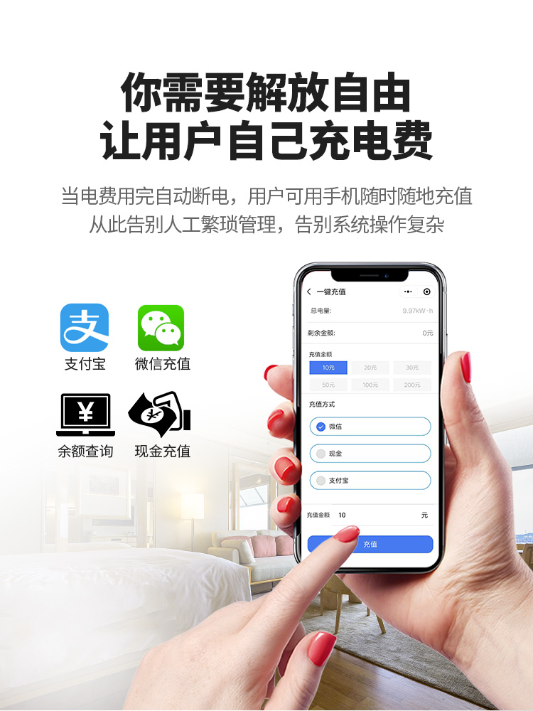 IC卡電表繳費不方便,需要到指定的地方去進行繳費,物業的工作人員下班時間又無法進行購電,即使購點后還要在到電表讀取一次IC卡。根據市場需求,遠程充值電表預付費抄表系統不存在工作人下班時間無法進行購電,也不需要繁瑣的插卡,輕輕松松的就可以使用微信、支付寶、APP等實現手機繳費。即使不會使用手機支付的部分人,也可以到物業現金繳費,物業在系統后臺遠程對電表進行充值。